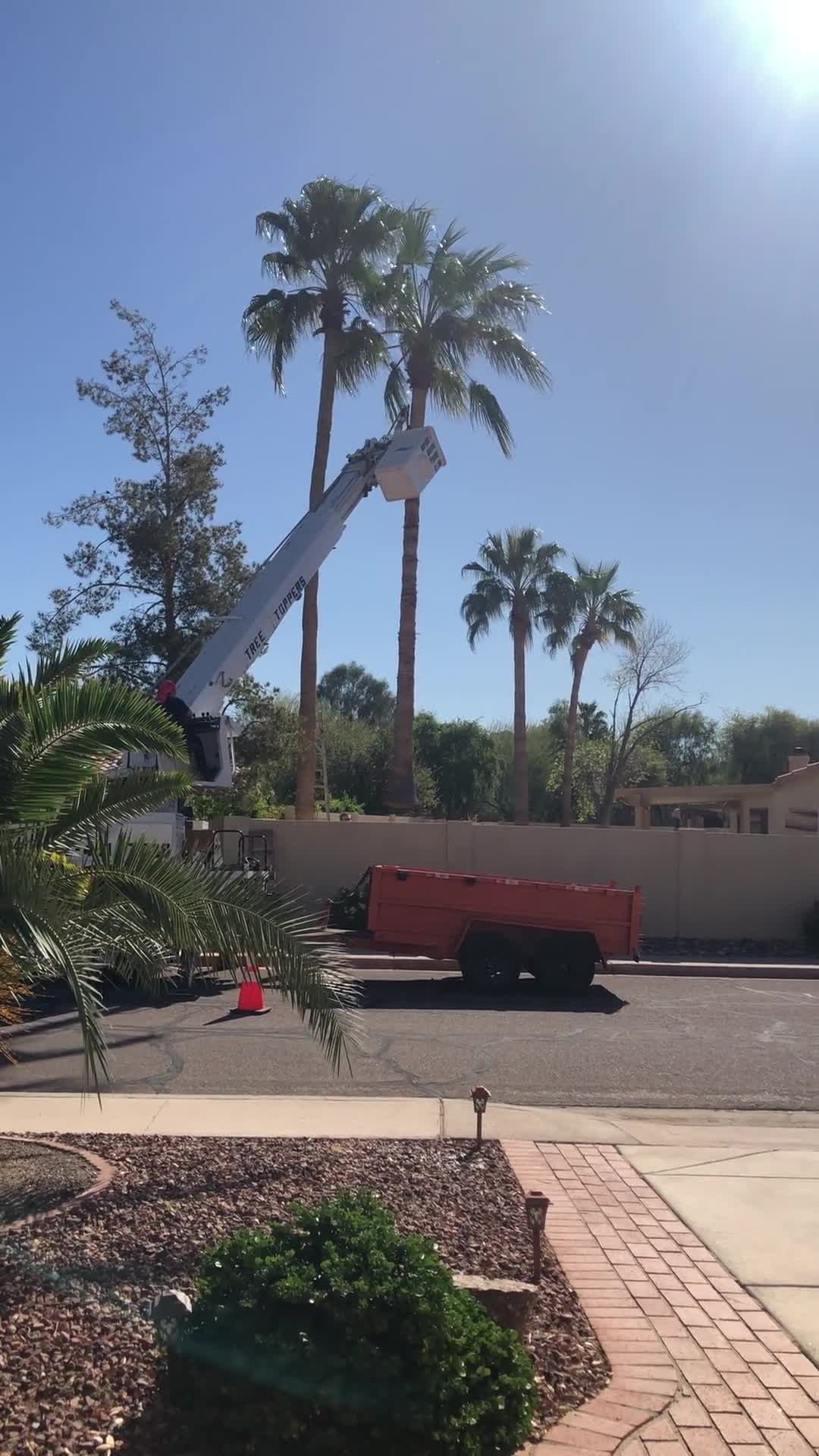 Watch Tree Toppers Expert Tree Trimming safely remove a palm tree in Tucson, AZ. We specialize in professional palm tree removal, tree trimming, and hazardous tree services. Serving Tucson and surrounding areas with experienced, owner-operated tree care. Call or text 520-912-0226 for a free estimate.